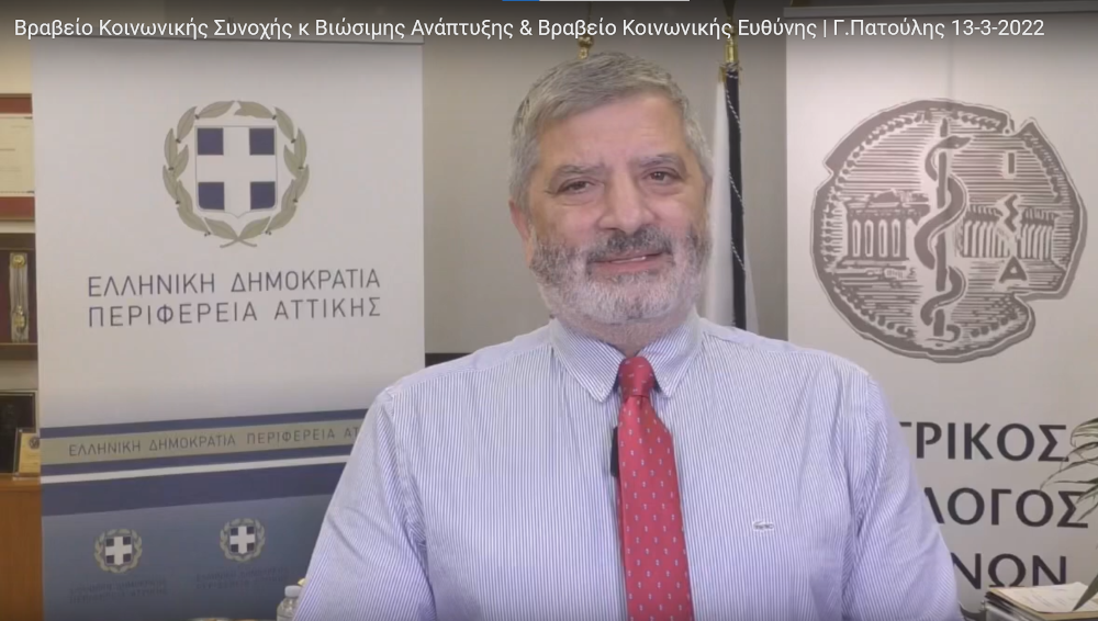 Ο Περιφερειάρχης Αττικής και επίτιμος Πρόεδρος της Κριτικής Επιτροπής Γ. Πατούλης, ο οποίος λόγω της εξέλιξης της κακοκαιρίας «Φίλιππος» δεν κατάφερε να βρίσκεται στην εκδήλωση, έστειλε βιντεοσκοπημένο μήνυμα στο οποίο επισήμανε μεταξύ άλλων: