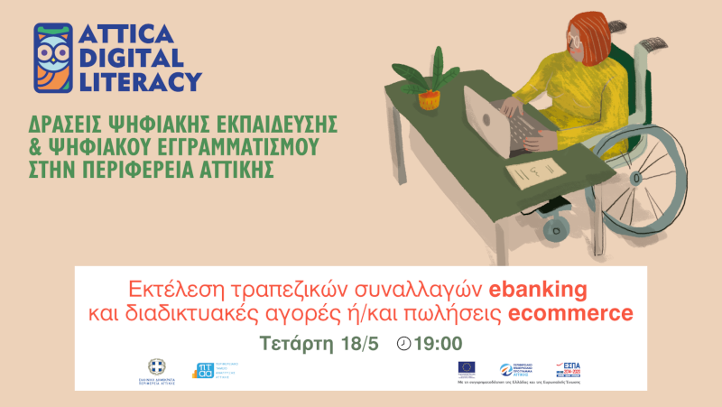 Συνεχίζουμε με το επόμενο webinar διαδικτυακά την Τετάρτη 18 Μαΐου 2022, στις 19:00 και θέμα «Εκτέλεση τραπεζικών συναλλαγών ebanking και διαδικτυακές αγορές ή/και πωλήσεις ecommerce» στο κανάλι YouTube και στη σελίδα Facebook του Ψηφιακού Εγγραμματισμού. Εισηγητές είναι στελέχη της δράσης. Όσες και όσοι επιθυμούν να βρεθούν μαζί μας, παρακαλούμε να κάνετε εγγραφή στη φόρμα https://tinyurl.com/digitalattiki.